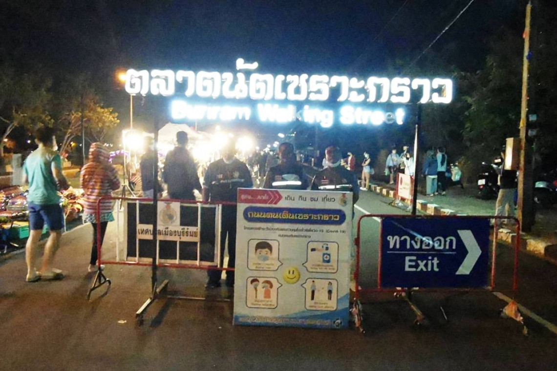 ซึ่งในวันนี้มีการเปิด “ถนนคนเดินเซราะกราว วอล์คกิ้งสตรีท” (ชั่วคราว) บริเวณถนนอนุวรรตน์ ริมคลองละลมโบราณ ลูกที่ 4 เป็นวันแรก บรรยากาศเป็นไปอย่างคึกคัก ได้มีพ่อค้าแม่ค้าถนนคนเดินเซราะกราว ซึ่งเป็นผู้จำหน่ายสินค้าเดิม จำนวน 430 ราย และผู้จำหน่ายสินค้าชุมชน จำนวน 20 ราย นำสินค้า 9 ประเภท ประกอบไปด้วย สินค้าหัตถกรรม , เครื่องประดับ, สิ่งประดิษฐ์ , ของที่ระลึก , อาหารปรุงสำเร็จ , อาหารปรุงแต่ง, เครื่องดื่ม , ตลาดสีเขียว และสินค้าเบ็ดเตล็ด มาจำหน่ายให้กับประชาชน และนักท่องเที่ยว ทั้งในจังหวัดบุรีรัมย์ และจังหวัดใกล้เคียง ได้มาเลือกซื้อไปรับประทาน และเป็นของฝาก