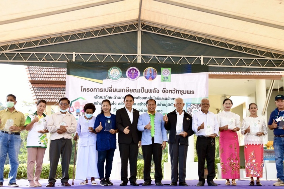 นายเอนก บำรุงกิจ รองผู้อำนวยการสำนักงานการวิจัยแห่งชาติ กล่าวว่า วช. ภายใต้กระทรวง อว. ได้ดำเนินการขับเคลื่อนแนวทางการวางยุทธศาสตร์ Quick Wins โครงการ “เปลี่ยนเกษียณเป็นพลัง” ในการสร้างกลไกการเตรียมความพร้อมในการเข้าสู่สังคมผู้สูงอายุของประเทศไทย ส่งเสริมให้ผู้สูงอายุหรือผู้เกษียณ ได้รับโอกาสและสร้างแรงจูงใจในการเข้าสู่สังคมการเรียนรู้ตลอดชีวิต เพื่อพัฒนาทักษะที่จำเป็นในการดำรงชีวิต และพัฒนาศักยภาพในการทำงานที่เป็นที่ต้องการของตลาดแรงงานในภาครัฐและภาคเอกชน เป็นพลังในการขับเคลื่อนเศรษฐกิจและสังคม และสามารถพึ่งพาตนเองได้ไม่เป็นเป็นภาระของครอบครัวหรือภาครัฐ ในปัจจุบันแผนงาน “เปลี่ยนเกษียณเป็นพลัง” ได้ดำเนินการขยายผล เข้าสู่เฟส 2 ผ่านโครงการ “เปลี่ยนเกษียณเป็นพลังจังหวัดชุมพร” โดยมี ผศ.ชลดรงค์ ทองสง แห่งมหาวิทยาลัยแม่โจ้-ชุมพร เป็นผู้รับผิดชอบโครงการดังกล่าว โดยมุ่งเน้นการผลักดันให้เกิดผลสำเร็จและเพิ่มความยั่งยืน เพื่อเตรียมความพร้อมในการเข้าสู่สังคมสูงวัยได้อย่างมีคุณภาพ วช. หวังเป็นอย่างยิ่งว่าความร่วมมือที่เกิดขึ้นในครั้งนี้ จะนำไปสู่การขับเคลื่อนและขยายผลในพื้นที่อื่นๆ ต่อไป เพื่อให้บรรลุเป้าหมายในการส่งเสริมและสนับสนุนให้ประชาชนเข้าสู่สังคมแห่งการเรียนรู้ตลอดชีวิต และนำไปสู่การพัฒนาทักษะในการใช้ชีวิตในโลกยุคใหม่ สามารถดูแลผู้สูงอายุ รวมทั้งผู้สูงอายุเอง ก็สามารถดูแลตัวเองได้ เพื่อเป็นกำลังในการขับเคลื่อนสังคมและเศรษฐกิจของประเทศต่อไป