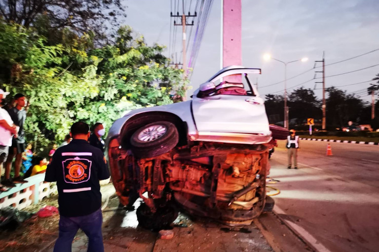 ที่สุพรรณบุรี เมื่อเวลา 18.00 น.วันที่ 10 ม.ค.ร.ต.อ.ทักษิณ ขันทองดี รอง สว.สอบสวน สภ.ทุ่งคอก อ.สองพี่น้อง จ.สุพรรณบุรี ได้รับแจ้งมีรถกระบะเสียหลักชนเสาไฟฟ้าถนนมาลัยแมนขาเข้านครปฐม หน้าโรงเรียนวัดทุ่งคอก เขตเทศบาลทุ่งคอก อ.สองพี่น้อง มีผู้เสียชีวิตติดคาซากรถ จึงรุดไปตรวจสอบพร้อม จนท.มูลนิธิเสมอกันสุพรรณบุรี