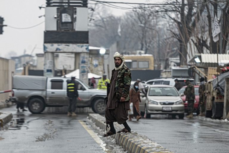 ภายหลังเกิดเหตุ สมาชิกของกองกำลังรักษาความปลอดภัยตอลิบาน เข้าตรวจสอบที่เกิดเหตุ และควบคุมสถานการณ์บนถนนที่ถูกปิดกั้นใกล้จัตุรัส Zanbaq ในกรุงคาบูล