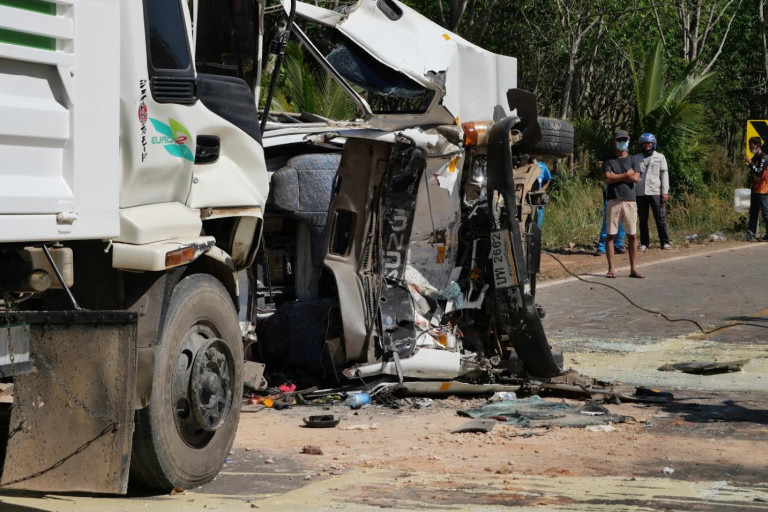 ส่วนรถบรรทุกน้ำยางพารา กู้ภัยต้องใช้เครื่องตัดถ่างเข้าช่วยเหลือ ขณะที่พลเมืองดีได้ใช้รถบรรทุกดิน ดึงรถบรรทุกดินที่ประสบอุบัติเหตุออกจากรถบรรทุกน้ำยาง เพื่อให้เจ้าหน้าที่เข้าช่วยเหลือผู้บาดเจ็บได้ง่ายขึ้น จากนั้นเจ้าที่กู้ภัยได้ใช้อุปกรณ์ตัดทางเข้าช่วยเหลือเบื้องต้นพบว่ามีผู้เสียชีวิตหนึ่งรายชื่อนายสุ้ม จันดา อายุ 33 ปี ลูกจ้างชาวกัมพูชา