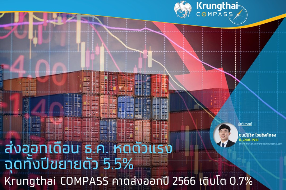 Krungthai COMPASS ประเมินมูลค่าการส่งออกในปี 2566 มีแนวโน้มเติบโตได้ที่ 0.7% คาดการผ่อนคลายมาตรการควบคุมโรคของจีนจะช่วยสนับสนุนภาคการผลิตและการส่งออกในระยะข้างหน้าให้เติบโตได้ หลังจากทางการจีนผ่อนคลายมาตรการ Zero COVID ในเดือนมกราคม 2566 ส่งผลให้แนวโน้มการจับจ่ายใช้สอยภายในประเทศของจีนจะทยอยฟื้นตัว และภาคการผลิตของจีนที่จะกลับเข้าสู่ภาวะปกติจะช่วยให้แนวโน้มปัญหา supply chain disruption คลี่คลายมากขึ้น ซึ่งคาดว่าปัจจัยดังกล่าวจะส่งผลดีต่อการส่งออกสินค้าไปยังประเทศจีน