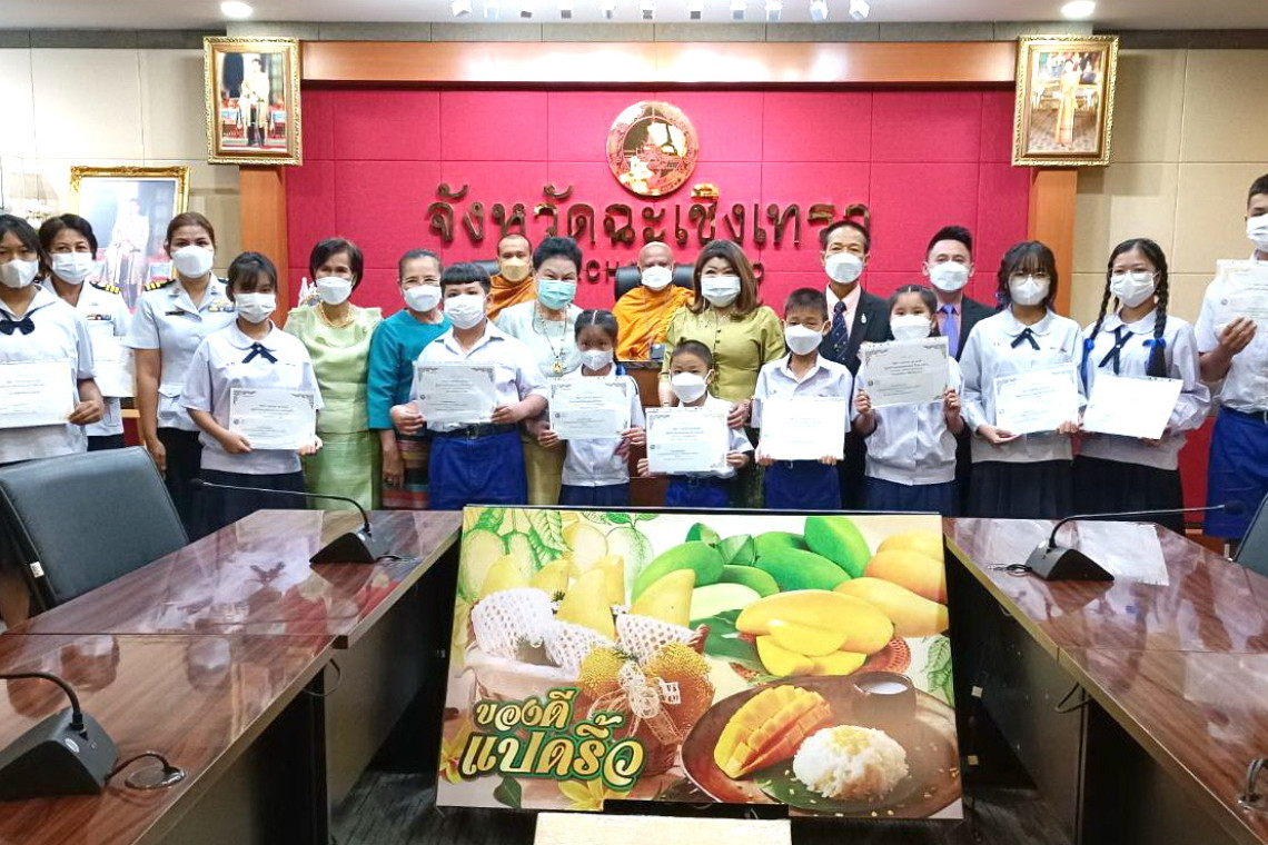 วันนี้ 25 มกราคม 2566 ที่ ห้องประชุมมรุพงษ์ศิริพัฒน์ ชั้น 4 ศาลากลางจังหวัดฉะเชิงเทรา อำเภอเมืองฉะเชิงเทรา จังหวัดฉะเชิงเทรา นางสาวฉัตรประอร นิยม รองผู้ว่าราชการจังหวัดฉะเชิงเทรา เป็นประธานมอบเกียรติบัตรรางวัล และสนับสนุนทุนการศึกษาแก่นักเรียน และครูโรงเรียนบุญประทีปวิทยาคาร อำเภอบ้านบึง จังหวัดชลบุรี ในโครงการที่ได้รับอนุญาต ของ ฯพณฯ นายอำพล เสนาณรงค์ ผู้เคยดำรงตำแหน่งองคมนตรี ในรัชกาลที่ ๙ โดยการสนับสนุนจากพระภิกษุสิริจนโท ร้านสายชล ร้านสิริเพ็ญ และวัดโพนงาม อ.สนามชัยเขต จ.ฉะเชิงเทรา นำนักเรียนและครู เข้ารับเกียรติบัตรฯ จำนวน 11 คน