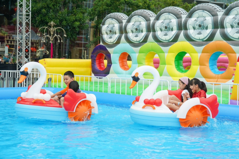LET’S PLAY at River Park, ICONSIAM สนามเด็กเล่นกลางแจ้งริมแม่น้ำเจ้าพระยา พาหนูๆ สนุกสุดมันส์ไปกับเครื่องเล่นเป่าลมขนาดยักษ์ 4 แบบ เป็นเครื่องเล่นที่สามารถปีนป่ายได้อย่างสนุกสนานและปลอดภัย ไม่ว่าจะเป็นVroom Your Way Out สนุกกับการฝ่าฟันอุปสรรคสุดหรรษาที่จะทดสอบความว่องไวของเด็กๆ รับรองงานนี้สนุกแน่นอน, Hang On ให้เด็กๆ ปีนป่ายอย่างสนุกสนาน แถมยังได้ออกกำลังกายไปในตัว, Pandora Box ให้เด็กๆ ได้ค้นหาความลึกลับของกล่อง Pandora Box พร้อมฝึกสมองประลองปัญญาโดยคิดค้นหาทางออกจากเขาวงกตนี้ให้เจอ และกิจกรรม The Tarzan Challenge เด็กๆ จะได้แปลงร่างเป็นทาร์ซาน ซึ่งเป็นตัวละครในฝันสำหรับเด็กๆ เกือบทุกคน แถมยังได้สนุกไปกับการปีนป่ายท่ามกลางบรรยากาศที่เสมือนยกป่ามาไว้ ณ ริเวอร์ พาร์ค เลยทีเดียว รวมถึงรถบั๊ม เครื่องเล่นยอดฮิตที่เด็กๆ หลายคนชื่นชอบ และเรือหงส์ ที่หนูๆจะได้ฝึกฝีมือการเป็นมือพายตัวจิ๋วอีกด้วย โดยสวนสนุกกลางแจ้งนี้เปิดตั้งแต่เวลา 15.00 – 21.00 น. มีอัตราค่าเข้าสำหรับเด็ก 250 บาท และผู้ใหญ่ 100 บาท