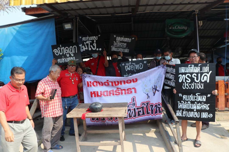 เมื่อเวลา 10.00 น.วันที่ 4 กุมภาพันธ์ 2566 ผู้สื่อข่าวรายงานว่า ได้มีตัวแทน “กลุ่มคนเสื้อแดง” จ.อ่างทอง ประมาณ 80-90 คน รวมตัวกันที่ร้านชาบู บาร์ พื้นที่หมู่ 5 ต.บางปลากด อ.ป่าโมก จ.อ่างทอง เพื่อแสดงจุดยืนในการคว่ำบาตรพรรคเพื่อไทย (พท.) เนื่องจากมีมติไม่ส่งนายโยธิน เปาอินทร์ ซึ่งเป็นผู้สมัครใจขอลงสมัครเลือกตั้ง ส.ส. ในนามพรรคเพื่อไทย ซึ่งเป็นผู้ได้รับการสนับสนุนจากกลุ่มคนเสื้อแดงอ่างทอง