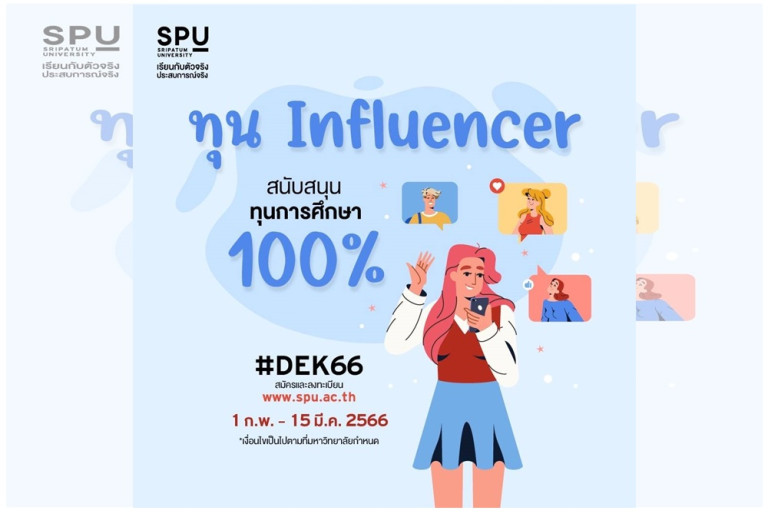 วันที่ 4 ก.พ.66   เพจ School of Architecture, Sripatum University โดย มหาวิทยาลัยศรีปทุม  โพสต์ข้อความระบุว่า  อยากเรียนคณะสถาปัตยกรรมศาสตร์  สมัครได้เลย! "ทุน Influencer"  เพียงมียอดผู้ติดตาม300,000ขึ้นไป   รับทุน 100% ค่าหน่วยกิต ตลอดหลักสูตร*  น้อง ๆ ที่กำลังหา สนับสนุนทุน 100% ค่าหน่วยกิต  ตลอดหลักสูตรห้ามพลาดโอกาสนี้ !!