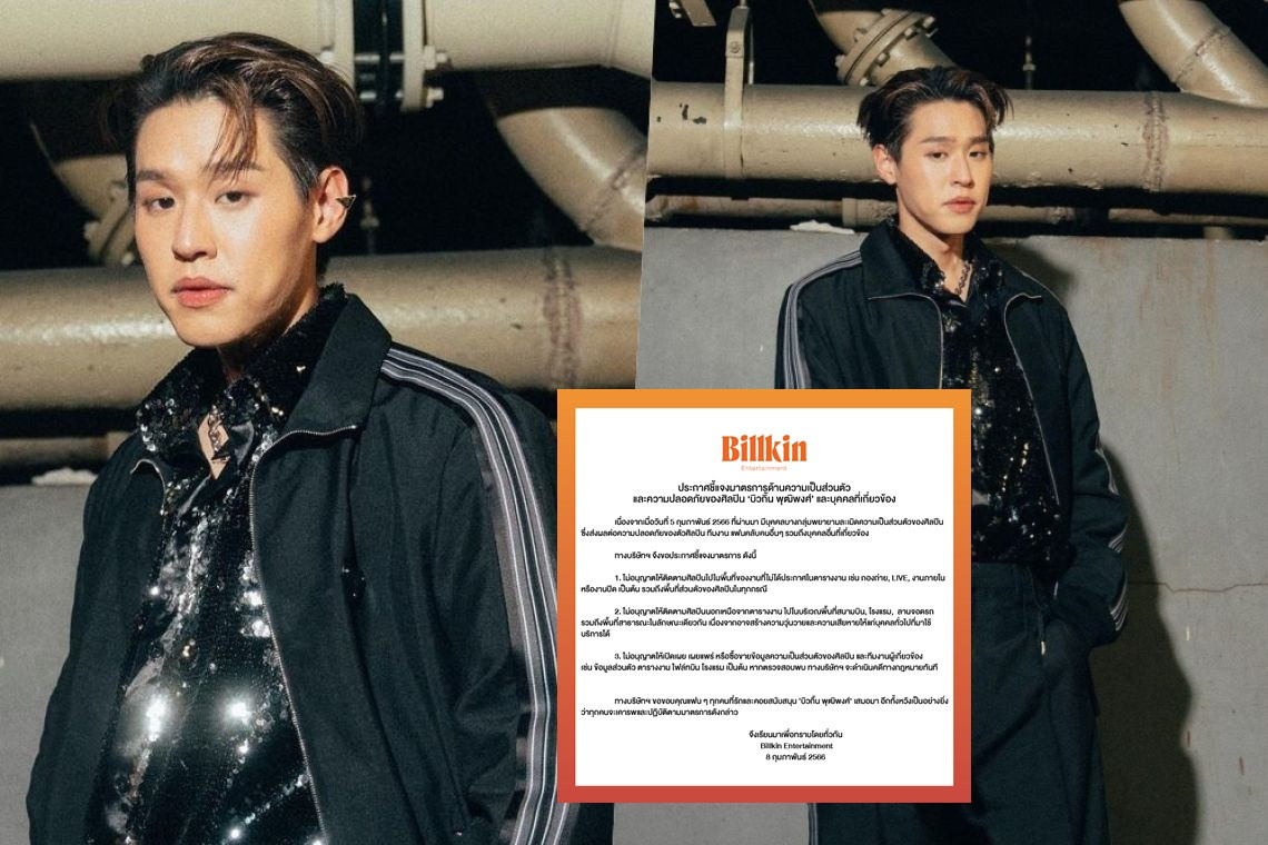 วันที่ 8 ก.พ.66 เพจ  Billkin Entertainment ซึ่งเป็นต้นสังกัดนักแสดง ศิลปินหนุ่มใน "บิวกิ้น พุฒิพงศ์" ออกประกาศชี้แจงมาตรการด้านความเป็นส่วนตัว และความปลอดภัยของศิลปิน 'บิวกิ้น พุฒิพงศ์' และบุคคลที่เกี่ยวข้อง  ความว่า ....