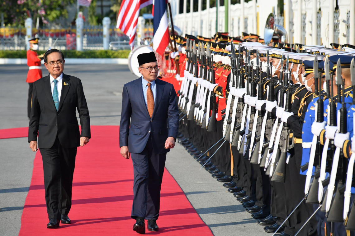 วันที่ 9 ก.พ.66 ผู้สื่อข่าวรายงาน ว่า ณ บริเวณสนามหญ้าหน้าตึกไทยคู่ฟ้า ทำเนียบรัฐบาล พล.อ.ประยุทธ์ จันทร์โอชา นายกรัฐมนตรี และ รมว.กลาโหม ร่วมพิธีต้อนรับ ดาโตะ เซอรี อันวาร์ อิบราฮิม นายกรัฐมนตรีมาเลเซีย ในโอกาสเดินทางเยือนประเทศไทยอย่างเป็นทางการในฐานะแขกของรัฐบาล พร้อมด้วยภริยา ระหว่างวันที่ 9-10 ก.พ. 2566 ในโอกาสเข้ารับตำแหน่งใหม่เมื่อเดือน พ.ย. 2565 ตามธรรมเนียมปฏิบัติของประเทศสมาชิกอาเซียน