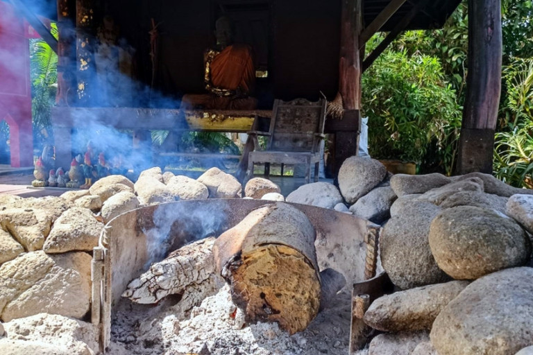 วันที่ 9 ก.พ.88 ที่วัดคมมนียเขต หรือวัดคึกคัก ต.คึกคัก อ.ตะกั่วป่า จ.พังงา ภายในวัดมีกุฏิไม้หลังเล็กๆกะทัดรัดหลังหนึ่ง มีกลุ่มควันไฟลอยคลุ้งอยู่ตลอดทั้งวัน สร้างความสนใจและความสงสัยให้กับคนต่างถิ่นที่แวะเวียนเข้ามาทำบุญและติดต่อกับทางวัด ภายในกุฏิด้านหน้าเปิดโล่งมีรูปปั้นขาดองค์จริง และภาพวาดอยู่ในกรอบขนาดใหญ่ มีร่องรอยปิดทองคำเปลว ตั้งแต่บันได เก้าอี้ไม้ รูปปั้นและรูปถ่าย โดยกุฏิหลังนี้อยู่ใกล้กับศาลาอนุสาวรีย์หลวงพ่อแหวง อาภากโร หรือ ท่อท่านแหวง อดีตเจ้าอาวาส พระอริยะสงฆ์ชื่อดังรูปหนึ่งในฝั่งอันดามัน ที่ว่ากันว่ามีวาจาสิทธิ์ เป็นที่เคารพศรัทธาของชาวบ้านในเขตจังหวัดพังงา ภูเก็ต และใกล้เคียง ซึ่งหลวงพ่อแหวงได้มรณภาพในปี 2511 หลังจากนั้นลูกศิษย์ได้จัดสร้างกฏิหลังนี้ขึ้นพร้อมกับรูปหล่อขนาดเท่าตัวจริงไว้กราบไหว้บูชา โดยด้านหน้ากฏิจะมีกองไฟไม้ฟืนล้อมด้วยก้อนหินจุดรมทั้งวันไม่เคยดับจะมีคนมาคอยเติมไม้ฟืนใส่อยู่ตลอด ซึ่งตอนที่มีชีวิตหลวงพ่อจะผิงไฟ อาบไฟแทนน้ำ มาตลอดชีวิต จะสรงน้ำปีละครั้งในวันสงกรานต์เท่านั้น