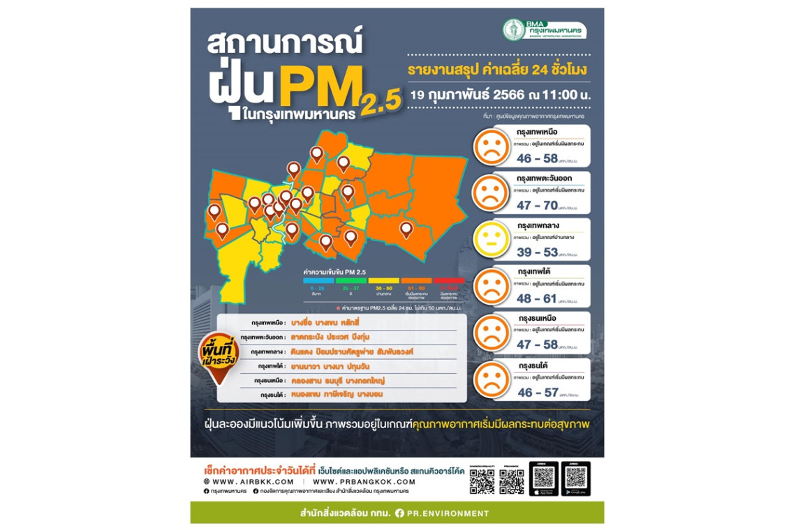 ศูนย์ข้อมูลคุณภาพอากาศกรุงเทพมหานครขอสรุปผลการตรวจวัด PM2.5 วันที่ 19 กุมภาพันธ์ 2566 เวลา 9.00-11.00 น.