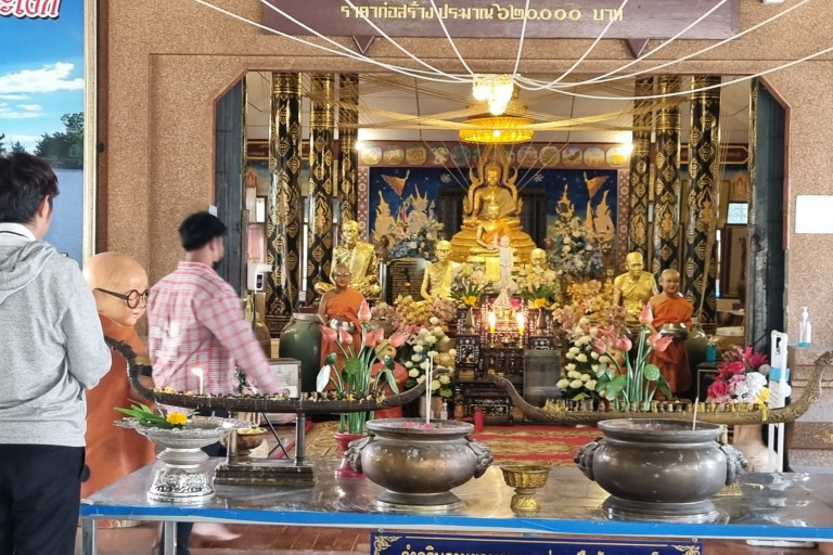 ผู้สื่อข่าว พบป้าเล็ก ชาวบ้านละแวกใกล้วัด นำเมี่ยงคำใส่รถเข็น พร้อมเครื่องเคียงมาจำหน่ายให้เป็นของว่างขบเคี้ยวของนักท่องเที่ยว โดยขายทั้งแบบเป็นไม้เสียบ ใน 1 ไม้มีเมี่ยง 3 คำ ในราคาไม้ละ 10 บาท ส่วนอีกแบบใส่ถุงขายเป็นชุดราคาชุดละ 40 บาท พบว่า แบบเสียบไม้ขายดีกว่า เพราะสะดวก สามารถรับประทานได้ทันทีไม้ต้องมาม้วน หรือหยิบเครื่องใส่ใบชะพลู