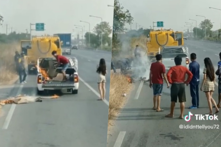 เป็นคลิปเหตุการณ์ระทึกที่โลกโซเชียลให้ความสนใจ เมื่อสมาชิก TikTok@ididnttellyou72 โพสต์คลิปรถกระบะเกิดไฟลุกไหม้บริเวณบนท้ายรถ พร้อมระบุข้อความว่า #ก้นบุหรี่เป็นเหตุ..น้องเข้าโยนทิ้งแต่ดันปลิวเข้าไปอยู่ในกระบะ #ขออนุญาตเจ้าของรถด้วยคับ