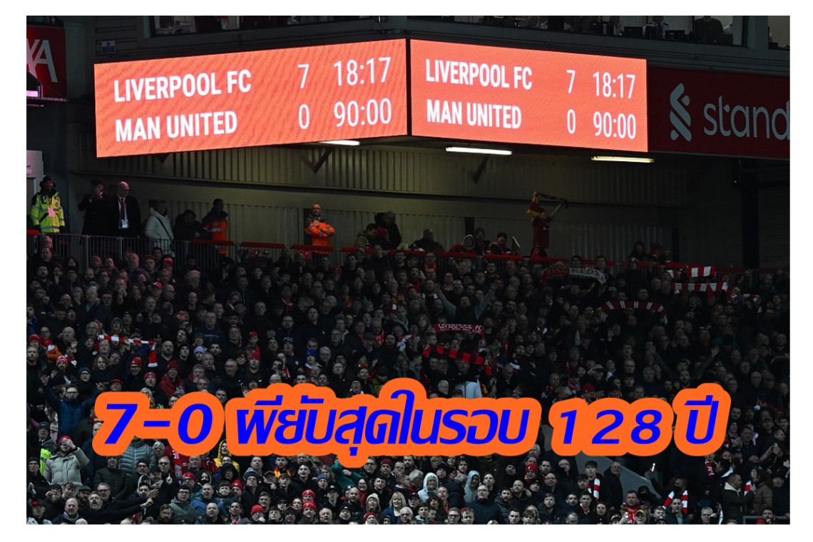 สถิติ 128 ปีถูกทำลาย ลิเวอร์พูล ยิง แมนยูฯ 7-0 ชนะสกอร์ขาดลอยสุดในศึกแดงเดือด