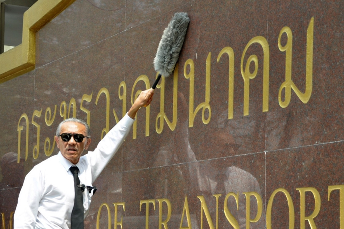 เมื่อเวลา 13.30 น. วันที่ 7 มี.ค.66 ที่กระทรวงคมนาคม ถนนราชดำเนิน นายชูวิทย์ กมลวิศิษฎ์ อดีตนักการเมือง ได้เข้ายื่นหนังสือถึงนายอธิรัฐ รัตนเศรษฐ รมช.คมนาคม ในฐานะรักษาการ รมว.คมนาคม เพื่อให้ตรวจสอบพฤติกรรมของข้าราชการระดับสูงในสังกัดกระทรวงที่ประพฤติมิชอบ พร้อมนำไม้กวาดและไม้ขนไก่ ปัดกวาดทำความสะอาดบริเวณป้ายกระทรวง ก่อนนำแจกันดอกไม้มาแสดงความยินดีและให้กำลังใจในการทำงานต่อนายอธิรัฐ