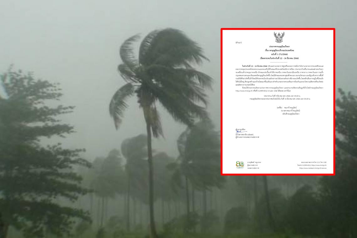 ในช่วงวันที่ 12 - 14 มีนาคม 2566 บริเวณความกดอากาศสูงหรือมวลอากาศเย็นกำลังปานกลางจากประเทศจีนจะแผ่ลงมาปกคลุมประเทศไทยตอนบนและทะเลจีนใต้ในขณะที่ประเทศไทยมีอากาศร้อน ประกอบกับคลื่นกระแสลมฝ่ายตะวันตก จะเคลื่อนเข้าปกคลุมภาคเหนือ ลักษณะเช่นนี้จะทำให้ภาคเหนื่อ ภาคตะวันออกเฉียงเหนือ ภาคกลาง ภาคตะวันออก รวมทั้งกรุงเทพมหานครและปริมณฑลมีพายุฤดูร้อนเกิดขึ้น โดยมีลักษณะของพายุฝนฟ้าคะนอง ลมกระโชกแรง และมีลูกเห็บตกบางพื้นที่ รวมถึงมีฟ้าผ่าเกิดขึ้นได้ จึงขอให้ประชาชนในบริเวณดังกล่าวระวังอันตรายดังกล่าวที่อาจจะเกิดขึ้น โดยหลีกเสี่ยงการอยู่ในที่โล่งแจ้ง ใต้ต้นไม้ใหญ่ สิ่งปลูกสร้างและป้ายโฆษณาที่ไม่แข็งแรง สำหรับเกษตรกรควรเตรียมการป้องกันและระวังความเสียหายที่จะเกิดต่อ ผลผลิตทางการเกษตรไว้ด้วย