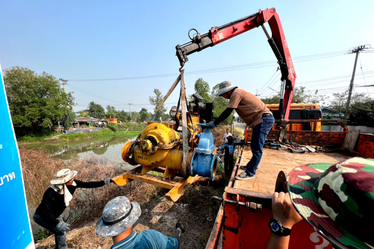 กรมชลฯ เร่งติดตั้งเครื่องสูบน้ำพร้อมกำจัดวัชพืชขวางทางน้ำ เพิ่มประสิทธิภาพการส่งน้ำให้ ปชช.