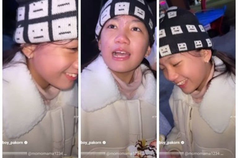 งานนี้ไม่พลาด หนุ่มบอย ได้โพสต์อินสตาแกรมทั้งภาพและคลิปให้ชมความสนุกสนานตลอดทริบเรียกเสียงฮากับน้องๆ และความหวานน่ารักๆ กับแฟนสาว ล่าสุดเจ้าตัวได้โพสต์คลิปขณะที่ วันใหม่ กำลังยืนซื้อขนมเครปถึง 2 อัน พร้อมกับพูดแซวฟ้องแม่ผ่านกล้องว่า “แม่วันใหม่กินเยอะ” ทำเอาน้องสาวรีบหันมาทำหน้าตึงบอก “อะไร” ก่อนเฮียบอยจะหัวเราะลั่นสะใจได้แกล้งน้องจนเสียอาการ