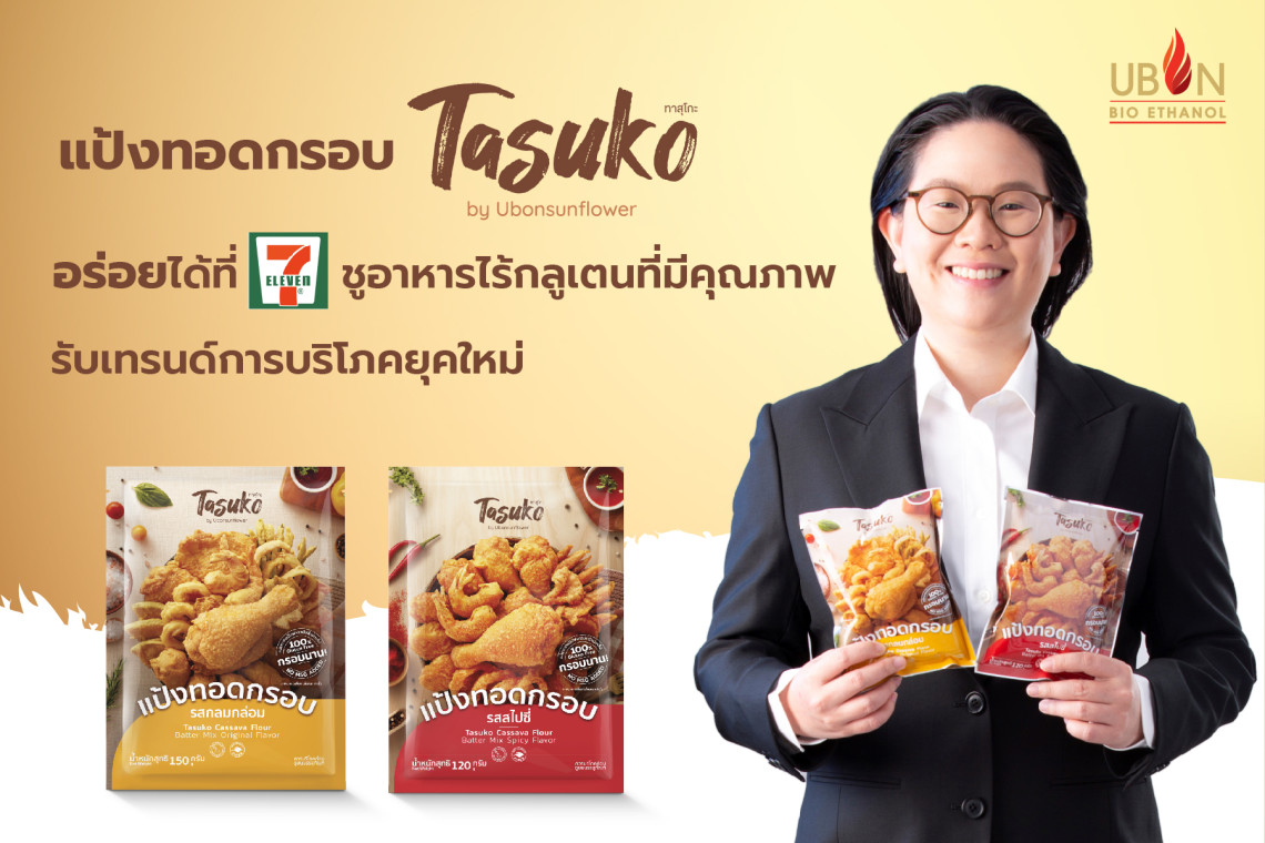แป้งทอดกรอบ “ทาสุโกะ (Tasuko)” โดย บริษัท อุบลซันฟลาวเวอร์ จำกัด (UBS) บริษัทในเครือ บริษัท อุบล ไบโอ เอทานอล จำกัด (มหาชน) หรือ UBE ส่งนวัตกรรมฟลาวมันสำปะหลัง ปราศจากกลูเตน ไฟเบอร์สูง ไม่มีผงชูรส แป้งที่จะเปลี่ยนเมนูทอดให้กรอบนานขึ้น ทางเลือกเพื่อคนรักของทอด การันตีด้วยรางวัลความอร่อยระดับสากล Superior Taste Award 2023 พร้อมขยายช่องทางการจัดจำหน่ายวางขายที่ 7-Eleven เริ่ม 16 มี.ค.นี้
