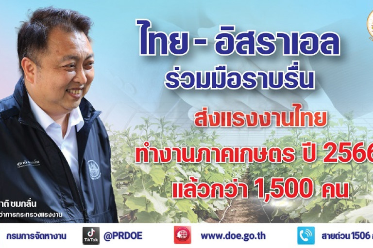 รัฐมนตรีว่าการกระทรวงแรงงาน เผยปี 66 โควตางานภาคเกษตรรัฐอิสราเอล 6,500 คน จัดส่งแล้ว 1,513 คน พร้อมปูทางขยายตลาดแรงงานภาคอุตสาหกรรมในอนาคต