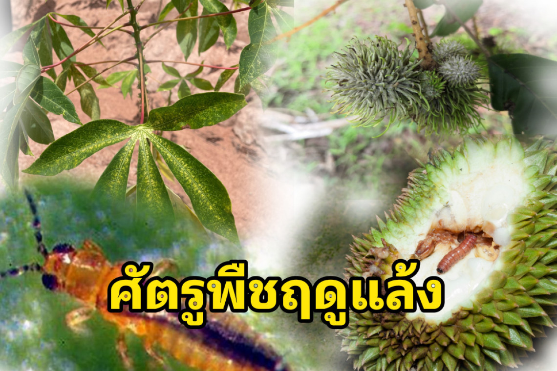 มันสำปะหลัง ในปัจจุบันตลาดยังมีความต้องการผลผลิตในปริมาณมาก การเพิ่มปริมาณและคุณภาพผลผลิตมันสำปะหลังไทยจึงเป็นสิ่งสำคัญ ศัตรูพืชที่ควรเฝ้าระวังในฤดูแล้ง ได้แก่ เพลี้ยแป้งมันสำปะหลัง หากเข้าดูดกินน้ำเลี้ยงต้นอ่อนยอดจะงอหงิกเป็นพุ่ม ลำต้นบิดเบี้ยวมีช่วงข้อถี่ แตกใบเป็นพุ่มหนากระจุกในส่วนของยอดใบ และมีราดำที่เกิดจากมูลเพลี้ยแป้งปกคลุมส่วนของใบพืช ป้องกันได้โดยจัดการระบบให้น้ำสร้างความชุ่มชื้นอยู่เสมอ และปล่อยศัตรูธรรมชาติ เช่น แมลงช้างปีกใส ด้วงเต่าตัวห้ำ ผีเสื้อหางติ่งตัวห้ำ และแตนเบียน ไรแดง ดูดกินน้ำเลี้ยงทำให้ใบเหลืองซีด ม้วนงอ และหลุดร่วง มักพบ 2 ชนิดสำคัญคือ ไรแดงหม่อนที่ทำลายส่วนใบล่างขึ้นสู่ยอด และไรแดงมันสำปะหลังที่ทำลายจากยอดลงไป เกษตรกรต้องหมั่นสำรวจแปลงปลูก และอนุรักษ์ศัตรูธรรมชาติ เช่น ด้วงเต่า ด้วงปีกสั้น และไรตัวห้ำ เพลี้ยหอยเกล็ดขาว ดูดกินน้ำเลี้ยงบริเวณก้านใบและหลังใบ ทำให้ใบเหลืองและร่วง หากแพร่กระจายทั้งลำต้นจะทำให้ต้นแห้งตาย แมลงหวี่ขาวยาสูบ อาศัยดูดกินน้ำเลี้ยงบริเวณใต้ใบ เป็นพาหะนำโรคใบด่างมันสำปะหลังที่จะทำให้ยอดมันสำปะหลังด่างเขียวอ่อนหรือเหลืองสลับเขียวเข้ม หงิกงอและเสียรูปทรง ป้องกันโดยอนุรักษ์ศัตรูธรรมชาติ ได้แก่ แมลงช้างปีกใส ด้วงเต่า ตัวห้ำ มวนโอเรียส และแตนเบียนเอ็นคาเซีย
