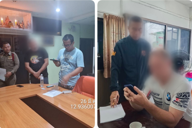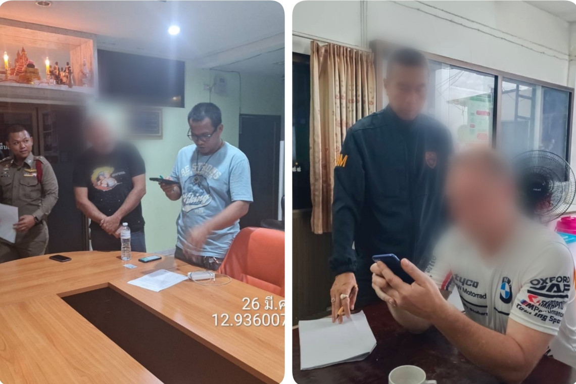 เย็นวันนี้ 27 มี.ค. พ.ต.อ.ฐนพงศ์ โพธิ์ทิ ผกก.สภ.เมืองพัทยา ร่วมกับ พ.ต.อ.ปริญญา กลิ่นเกษร ผกก.ตม.จว.ชลบุรี ได้นำกำลังฝ่ายสืบสวน และตำรวจศูนย์ปราบปรามอาชญากรรมคนร้ายข้ามชาติ ได้ร่วมกันจับกุมตัว 2 คนร้ายตามหมายจับศาลจังหวัดพัทยา ในฐานความผิด “ร่วมกันบุกรุกในอาคารสำนักงานในความครอบครองผู้อื่น ในเวลากลางคืน และร่วมกันลักทรัพย์ในเวลากลางคืน โดยใช้ยานพาหนะเพื่อสะดวกแก่การกระทำผิดหรือการพาทรัพย์นั้นไป หรือเพื่อให้พ้นการจับกุม” ประกอบด้วย นายมาร์คาส หรือ Mr.Markus (สงวนนามสกุล)อายุ 47 ปี สัญชาติอังกฤษ และนายมยอง หรือ Mr.Myoung (สงวนนามสกุล) อายุ 52 ปี สัญชาติเกาหลี