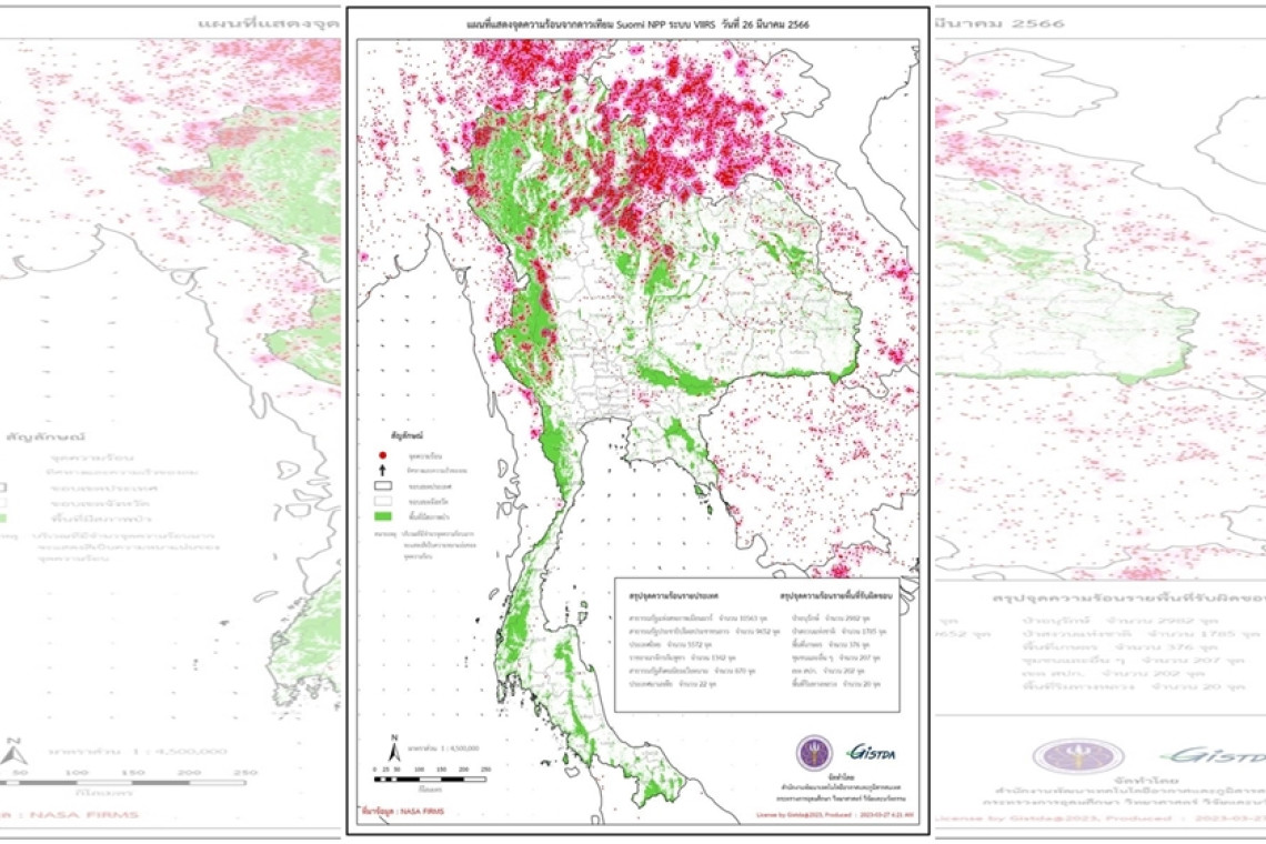 GISTDA เผยข้อมูลจากดาวเทียมซูโอมิ เอ็นพีพี (Suomi NPP) ของวันที่ 26 มีนาคม 2566 ไทยพบจุดความร้อนมากที่สุด 5,572 จุด สูงสุดในรอบปี 5 จากการเก็บสถิติที่ผ่านมา ในขณะที่เพื่อนบ้านอย่างพม่ายังครองแชมป์สูงสุงถึง 10,563 จุด ตามด้วย สปป.ลาว 9,652 บาท, กัมพูชา 1,342 จุด, เวียดนาม 870 จุด และ มาเลเชีย 22 จุด
