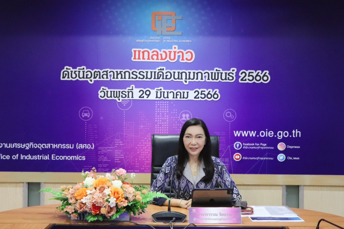 นางวรวรรณ ชิตอรุณ ผู้อำนวยการสำนักงานเศรษฐกิจอุตสาหกรรม (สศอ.) เปิดเผยว่า ดัชนีผลผลิตอุตสาหกรรม (MPI) เดือนกุมภาพันธ์ ปี 2566 อยู่ที่ระดับ 98.89 หดตัวเล็กน้อยที่ร้อยละ 0.45 เมื่อเทียบกับเดือนก่อน มีอัตราการใช้กำลังการผลิตอยู่ที่ร้อยละ 61.87 โดยอุตสาหกรรมที่เน้นตลาดในประเทศ รวมถึงที่เกี่ยวข้องกับการท่องเที่ยวหลายอุตสาหกรรมยังขยายตัวได้ดี ได้แก่ รถยนต์ ร้อยละ 6.64 การกลั่นน้ำมัน ร้อยละ 7.33 รถจักรยานยนต์ ร้อยละ 27.99 รองเท้า ร้อยละ 6.7 และกระเป๋า ร้อยละ 34.71 แม้การผลิตภาคอุตสาหกรรมจะได้รับผลกระทบจากอุปสงค์จากต่างประเทศที่อ่อนแอลง เนื่องจากสภาวะเศรษฐกิจโลกยังคงเปราะบาง โดยเฉพาะเศรษฐกิจประเทศคู่ค้าอย่างสหรัฐอเมริกาและยุโรป ส่งผลกระทบต่อภาคการส่งออกของไทย