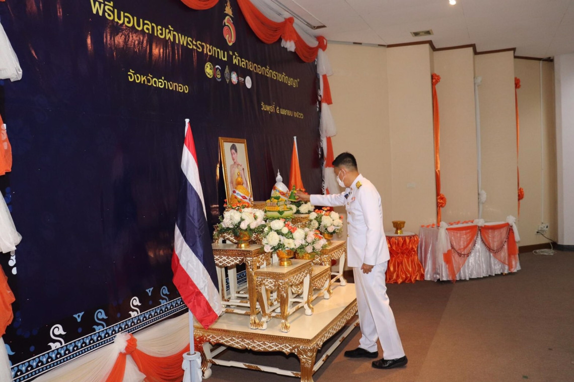 จังหวัดอ่างทอง จัดพิธีมอบแบบลายผ้าพระราชทาน “ผ้าลายดอกรักราชกัญญา” ให้กับส่วนราชการ นายอำเภอ และช่างทอผ้าทุกกลุ่ม ทุกเทคนิค เฉลิมพระเกียรติสมเด็จพระเจ้าลูกเธอ เจ้าฟ้าสิริวัณณวรี นารีรัตนราชกัญญา เนื่องในโอกาสทรงเจริญพระชนมายุครบ 3 รอบ 36 พรรษา พัฒนาคุณภาพชีวิตประชาชนอย่างยั่งยืน