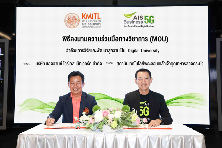 เอไอเอส ร่วมกับสถาบันเทคโนโลยีพระจอมเกล้าเจ้าคุณทหารลาดกระบัง (สจล.) ลงนามบันทึกข้อตกลงความร่วมมือทางวิชาการในการวิจัยและพัฒนามหาวิทยาลัยสู่ความเป็น Digital University ที่ครอบคลุมในทุกมิติ ทั้งด้านโครงสร้างพื้นฐานดิจิทัล ระบบการดูแลสุขภาพอัจฉริยะ และการบริหารจัดการพลังงานเพื่อมุ่งสู่ความเป็นมหาวิทยาลัยสีเขียว (Green University)