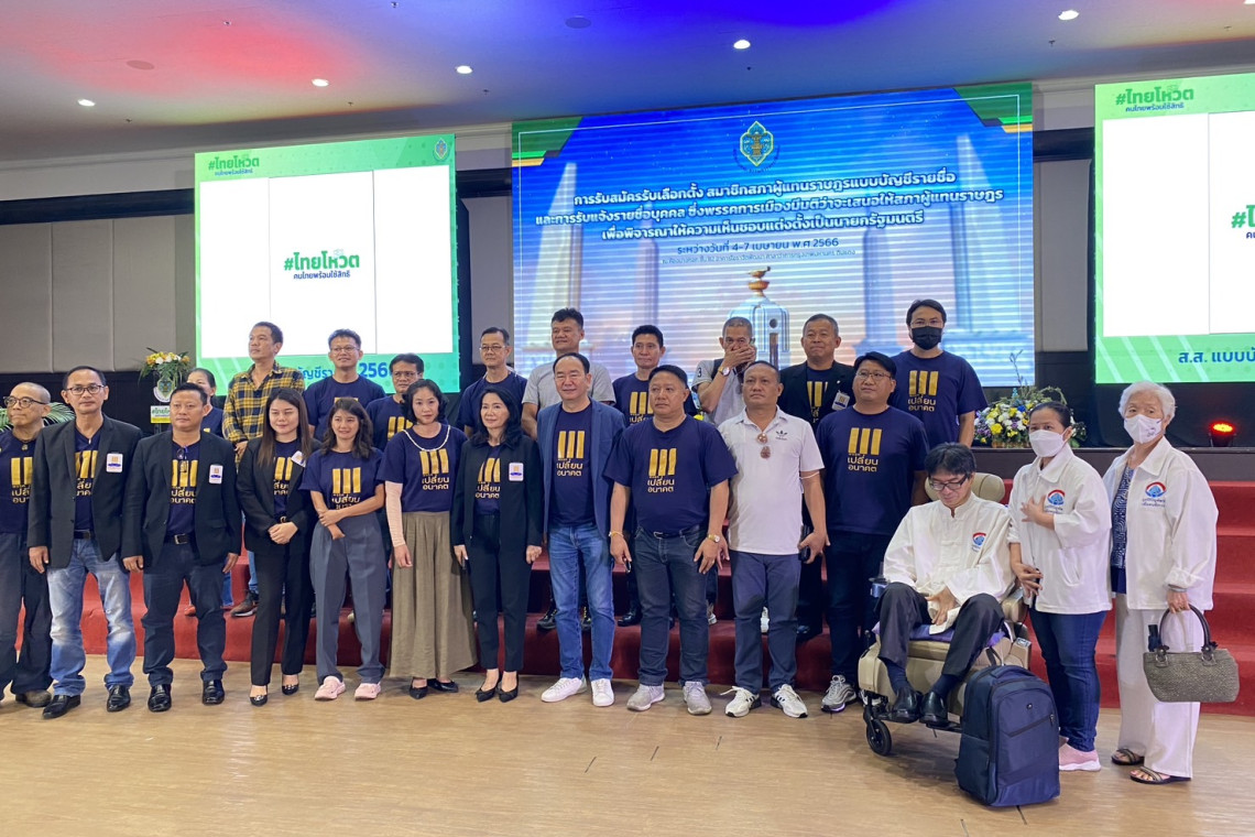 เมื่อวันที่ 7 เม.ย.66 ผศ.ดร. อัครนันท์ อริยศรีพงษ์ หัวหน้าพรรคเปลี่ยนอนาคต นายภิญโญ รู้ธรรม ผู้อำนวยการพรรคเปลี่ยนอนาคต นายปรีดา ลิ้มนันทกุล เลขาธิการมูลนิธิปัญพัฒน์เพื่อคนพิการ พร้อมด้วยกรรมการบริหารพรรค ผู้พิการ ผู้สมัครสส.ระบบบัญชีรายชื่อ สมาชิกพรรคเปลี่ยนอนาคต ได้เดินทางมาที่อาคารไอราวัตพัฒนา ศาลาว่าการกรุงเทพมหานคร 2 แขวงและเขตดินแดง เพื่อยื่นใบสมัคร ส.ส.ระบบบัญชีรายชื่อ โดยได้จัดทำบัญชีรายชื่อมาทั้งสิ้น 23 ราย โดยได้หมายเลขพรรคระบบบัญชีรายชื่อหมายเลข 65 โดยเสนอชื่อ ผศ.ดร.อัครนันท์ เป็นแคนดิเดตนายกรัฐมนตรี ซึ่งพรรคนี้มีเป้าหมายชัดเจนในการอาสา “ทวงสิทธิคนพิการ”