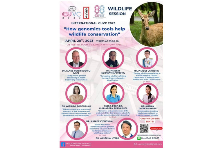 จีโนมิกส์คืออะไร และจะใช้อนุรักษ์สัตว์ป่าได้อย่างไร ขอเชิญทุกท่านเข้ามารับฟังและร่วมกันหาทางแก้ไขปัญหาการผสมเลือดชิดเพื่อให้สัตว์ป่าหายากบนโลกของเรามีพันธุกรรมที่บริสุทธิ์ถูกต้องตามชนิด/สายพันธุ์ และหลุดพ้นจากภาวะคุกคามเนื่องจากการผสมเลือดชิดอย่างยั่งยืนต่อไป