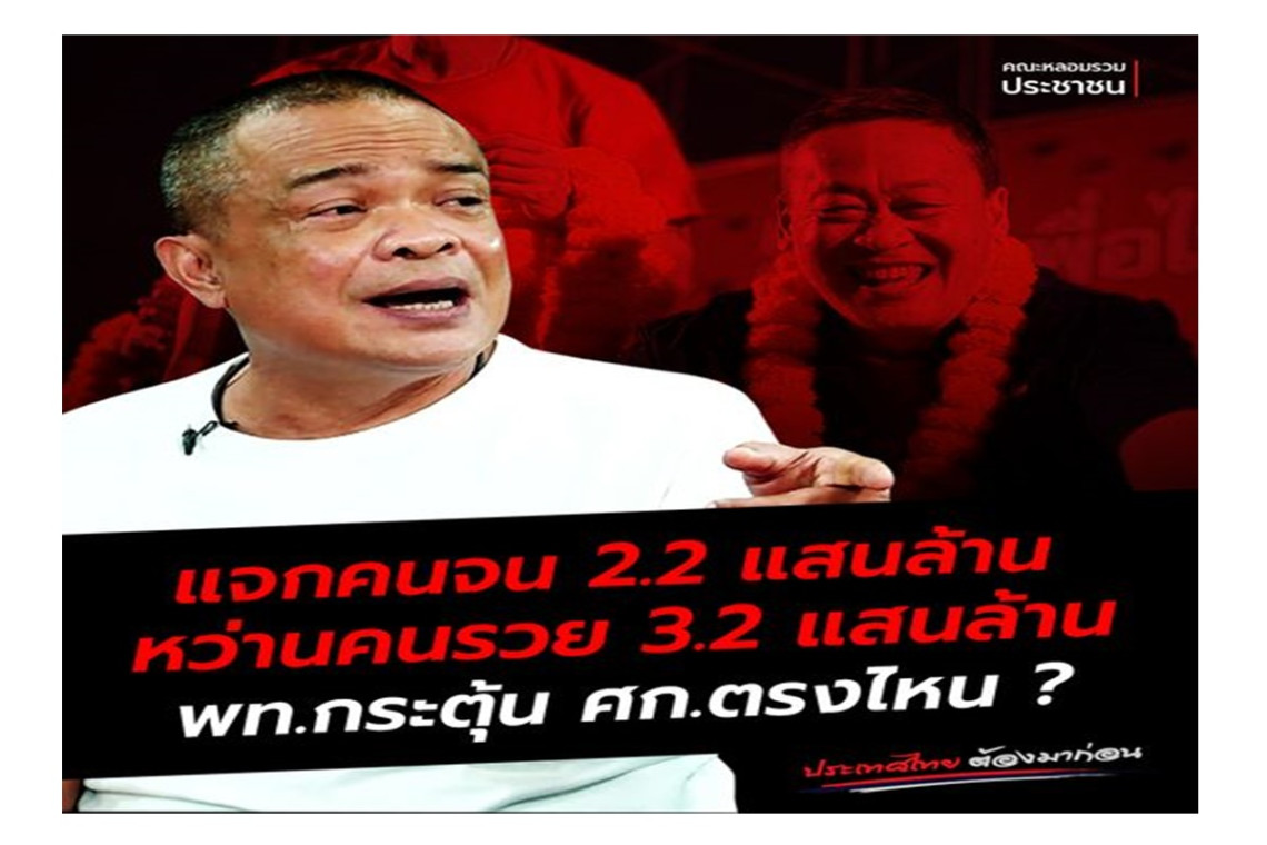 อีกทั้ง เห็นว่า ถ้าต้องการแจกเงินไปกระตุ้นเศรษฐกิจเพื่อต่อลมหายใจให้คนจนแล้ว ก็ไม่น่าเกิน 22 ล้านคน คิดเฉลี่ยเป็นหนึ่งในสามของจำนวนประชากรทั้งประเทศ (ประมาณ 66 ล้านคน) ดังนั้น จึงเหลือคนอีก 32 ล้านคน ซึ่งคนเหล่านี้จึงเชื่อได้ว่า ไม่น่าจะเป็นคนยากจนจริง