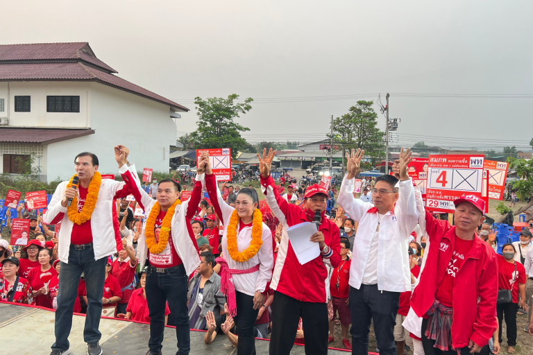 แกนนำเพรรคเพื่อไทย เปิดตัวผู้สมัคร ใน อ.ปาย จ.แม่ฮ่องสอน ประกาศปักธงที่เมืองปาย หวังได้สส.เพื่อไทยแลนด์สไลด์ทั้งประเทศ แขวะ อดีตนายก ฯ ไม่ได้มาจากการเลือกตั้ง โวเงินดิจิตอล เหนือกว่าใครและใช้ได้ทุกคนโดยไม่เลือกว่ารวยหรือจน