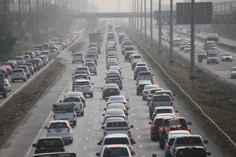 บรรยากาศถนนพหลโยธินขาออก มุ่งหน้าภาคอีสาน ช่วงอำเภอวังน้อย จังหวัดพระนครศรีอยุธยา ปริมาณรถหนาแน่น ในช่วงเทศกาลวันหยุดสงกรานต์ 2566 ซึ่งวันนี้(13 เม.ย.)เป็นวันสงกรานต์วันแรก ประชาชนเดินทางกลับภูมิลำเนาและท่องเที่ยวเป็นจำนวนมาก