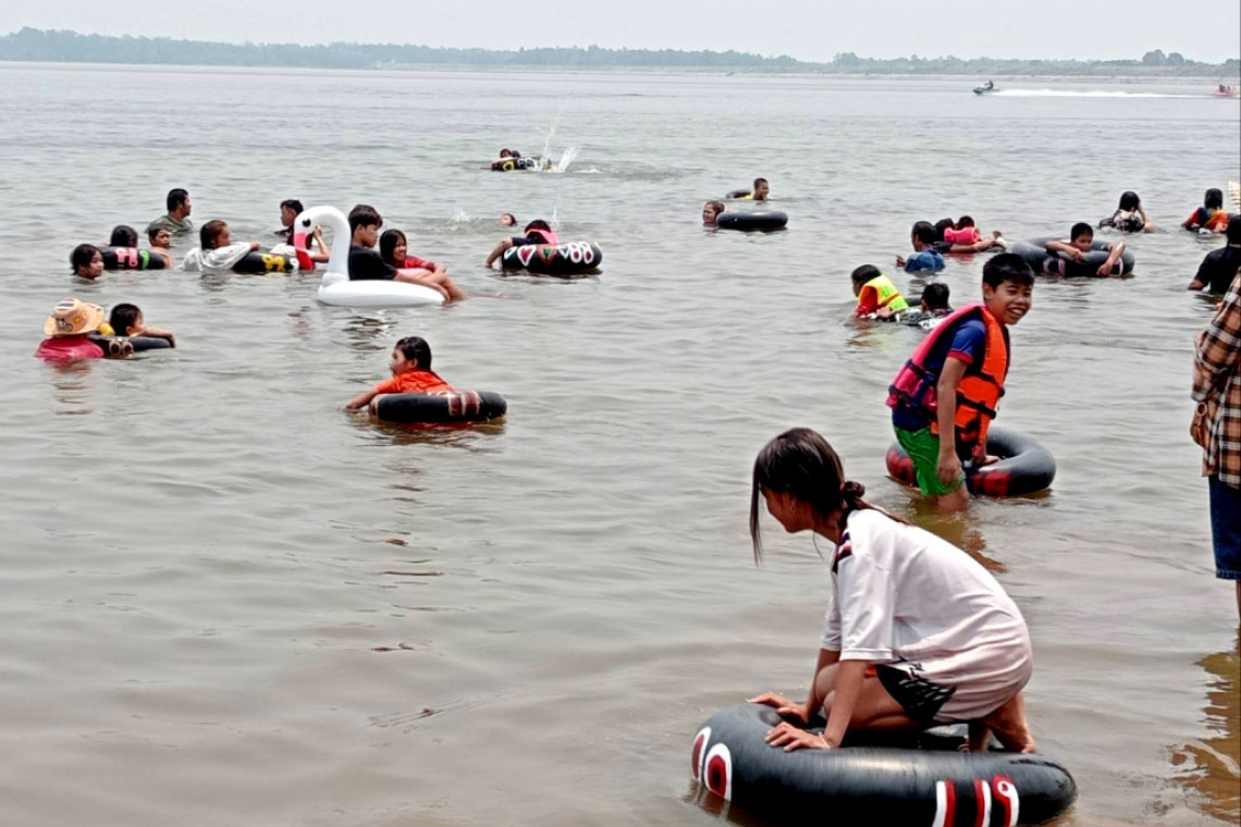 นักท่องเที่ยวทั่วสารทิศ แห่ลงเล่นน้ำที่เขื่อนลำปาว บริเวณหาดดอกเกด หรือทะเลอีสาน เพื่อดับร้อน ขณะที่ ผอ.โครงการส่งน้ำและบำรุงรักษาลำปาว กำชับผู้ประกอบการ ให้บริการทั้งเครื่องเล่นและจำหน่ายอาหารในราคาเป็นธรรม คาดช่วงสงกรานต์นักท่องเที่ยวทะลักเข้ามากว่า 5 หมื่นคน