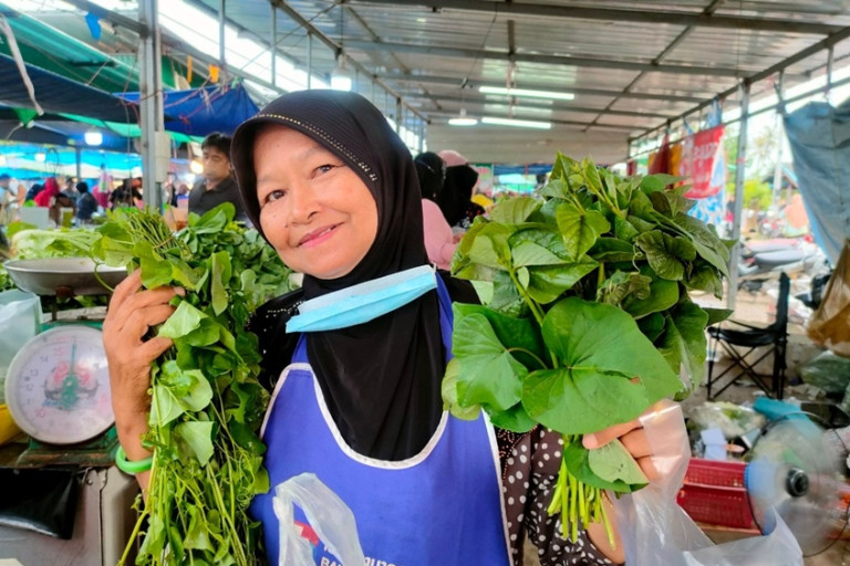พี่ลัดดา หยีตาอิด แม่ค้าแผงผักสด บอกว่า ที่ร้านจะเป็นจุดรับฝากสินค้าจากชาวบ้านที่ไม่อยากมาวางแผงขาย บางรายมีผัก 2-3 ถุง มีปลา 3-4 ตัวก็มาฝากขาย สินค้าพื้นบ้านรายชนิดก็จะมารวมที่แผงนี้ขายในราคาถูก ถุงละ 10 บาท ขึ้นไป จึงทำให้ขายดี บางคนนำพริกสดที่ปลูกไม่กี่ต้นแต่เหลือจากทานที่บ้านก็มาฝากขายที่ร้านนี้ ใครมีอะไรก็เอามาฝากขายได้ โดยเฉพาะผักผลไม้ตามฤดูกาล เพื่อช่วยเหลือชาวบ้านด้วย