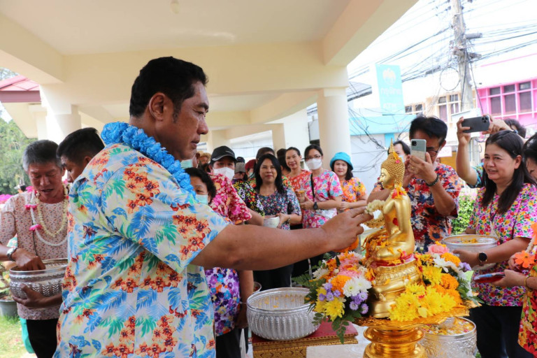 วันที่ 17 เมษายน 2566 ผู้สื่อข่าวรายงาน ว่า ที่ สำนักงานเทศบาลเมืองศรีราชา จ.ชลบุรี นายสนธยา คุณปลื้ม อดีตรัฐมนตรีว่าการกระทรวงวัฒนธรรม นายฉัตรชัย ทิมกระจ่างนายกเทศมนตรีเมืองศรีราชา คณะผู้บริหาร สมาชิกสภาเทศบาล หัวหน้าส่วนการงาน และชาวชุมชน ได้ร่วมจัดพิธีรดน้ำดำหัวผู้สูงอายุ งานวันสงกรานต์และวันไหลศรีราชา