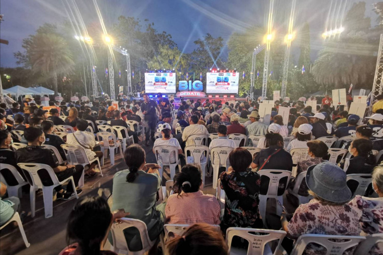 18 เม.ย.66 ผู้สื่อข่าวรายงานว่า เมื่อช่วงค่ำคืนของวันที่ 17 เม.ย.ที่ผ่านมา ได้มีการจัดเวที ดีเบต ประชันวิสัยทัศน์ ผู้สมัคร ส.ส.บุรีรัมย์ ซึ่งมีตัวแทน ผู้สมัคร ส.ส.บุรีรัมย์ จาก 6 พรรคการเมือง ได้แก่ พรรคก้าวไกล , พรรคไทยสร้างไทย , พรรคภูมิใจไทย , พรรครวมไทยสร้างชาติ , พรรคพลังประชารัฐ และพรรคเพื่อไทย โดยมีผู้สมัคร ส.ส.บุรีรัมย์ ผู้สนับสนุนพรรคการเมือง กองเชียร์ผู้สมัคร และประชาชน กว่า 500 คน มาให้กำลังใจ และร่วมรับฟัง ซึ่งเจ้าหน้าที่ตำรวจ สภ.เมืองบุรีรัมย์ ทั้งในและนอกเครื่องแบบ มาดูแลรักษาความสงบเรียบร้อย และความปลอดภัย ที่บริเวณลานเซราะกราว หน้าสำนักงานเทศบาลเมืองบุรีรัมย์ ต.ในเมือง อ.เมือง จ.บุรีรัมย์