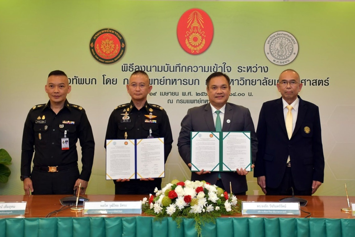 เมื่อวันที่ 19 เม.ย.66 ที่กองบัญชาการ กรมแพทย์ทหารบก มหาวิทยาลัยเกษตรศาสตร์ และ กองทัพบก โดย กรมแพทย์ทหารบก ได้จัดให้มีพิธีลงนามบันทึกความเข้าใจว่าด้วยความร่วมมือให้วิทยาลัยแพทยศาสตร์พระมงกุฎเกล้า เป็นสถาบันพี่เลี้ยงให้กับคณะแพทยศาสตร์ มหาวิทยาลัยเกษตรศาสตร์  เพื่อผลิตและพัฒนาบัณฑิตแพทย์ แพทย์ผู้เชี่ยวชาญ อาจารย์ และบุคลากรทางการแพทย์ รวมถึงส่งเสริมงานวิจัย นวัตกรรมเพื่อมุ่งสร้างศาสตร์การแพทย์แห่งแผ่นดิน โดยบูรณาการความรู้ด้านการแพทย์ การเกษตร สิ่งแวดล้อม วิทยาศาสตร์และเทคโนโลยี ตามเอกลักษณ์ของคณะแพทยศาสตร์ มหาวิทยาลัยเกษตรศาสตร์ และพัฒนางานด้านบริการวิชาการแก่สังคมร่วมกัน ผู้ร่วมลงนามประกอบด้วย ดร. จงรัก วัชรินทร์รัตน์ อธิการบดีมหาวิทยาลัยเกษตรศาสตร์ และพลโท วุฒิไชย อิศระ เจ้ากรมแพทย์ทหารบก รับมอบอำนาจจาก         ผู้บัญชาการทหารบก โดยมีพลเอก รองศาสตราจารย์ นายแพทย์ ชุมพล เปี่ยมสมบูรณ์ รักษาการแทนคณบดีคณะแพทยศาสตร์ มหาวิทยาลัยเกษตรศาสตร์ และ พลตรี ธำรงโรจน์ เต็มอุดม ผู้อำนวยการวิทยาลัยแพทยศาสตร์พระมงกุฎเกล้า ร่วมลงนามเป็นพยาน