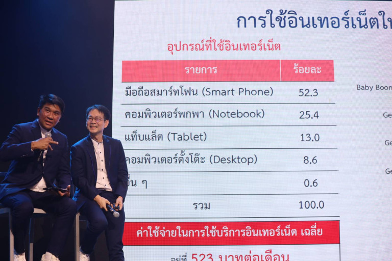 เมื่อถามถึงพฤติกรรมการใช้ชีวิตของผู้บริโภคในยุคดิจิทัล พบว่า โดยเฉลี่ยคนไทยใช้ระยะเวลาในสื่อสังคมออนไลน์ 7 ชั่วโมง อย่างไรก็ตาม ผู้ตอบมากถึง 48.9% ระบุว่า มีความเสียหายจากภัยคุกคาม หรือการล่อลวงทางการเงินออนไลน์ ส่วนอีก 40.5% ระบุเสียหายปานกลางถึงน้อย และอีก 10.6% ไม่สร้างความเสียหายเลย โดยแนวทางในการรับมือภัยคุกคามทางการเงินออนไลน์ คือ งดหรือหลีกเลี่ยงการทำธุรกรรมที่เสี่ยงต่อภัยคุกคามทางการเงิน เช่น กดลิงก์แปลกปลอม, ตรวจสอบข้อมูลละเอียดก่อนทำธุรกรรมทุกครั้ง รักษาข้อมูลส่วนตัว, ติดตามข่าวสาร เพื่อให้รู้เท่าทันกลโกง, ทำธุรกรรมการเงินผ่านออนไลน์เท่าที่จำเป็น