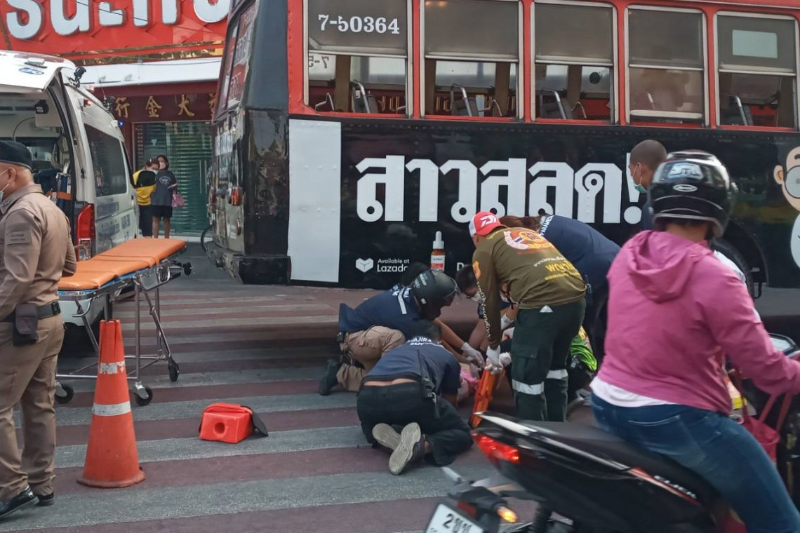 เมื่อเวลา 07.00 น. วันที่ 23 เม.ย. พ.ต.ต.วิชัย มีขวัญ สารวัตร(สอบสวน) สน.สามเสน รับแจ้งเหตุ รถประจำทางชนคนได้รับบาดเจ็บ บริเวณกลางสี่แยกศรีย่าน แขวงนครชัยศรี เขตดุสิต กรุงเทพฯ ก่อนรุดตรวจสอบที่เกิดเหตุพร้อมประสานหน่วยกู้ชีพวชิรพยาบาลเข้าให้การช่วยเหลือ