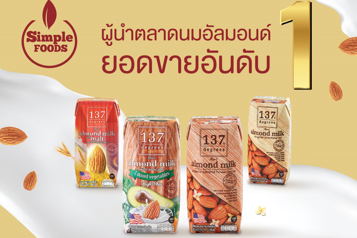 นางสาวอริสา อร่ามวัฒนานนท์ กรรมการผู้จัดการ บริษัท ซิมเพิ้ล ฟู้ดส์ จำกัด ผู้ผลิตและจัดจำหน่ายนมอัลมอนด์แบรนด์ 137ดีกรี และโฮลี่ นัทส์ กล่าวว่า จากข้อมูลของ เอซี นีลเส็น (AC Nielsen) ที่สำรวจตลาดนมจากอัลมอนด์ในประเทศไทย ตั้งแต่เดือนมกราคมถึงเดือนธันวาคม 2565 พบว่าในผลิตภัณฑ์กลุ่มนมอัลมอนด์ของบริษัทฯ มียอดขายรวมเป็นอันดับหนึ่ง ด้วยส่วนแบ่งการตลาดที่ 48% ของมูลค่าตลาดนมอัลมอนด์รวม โดยตลาดนมจากถั่วและธัญพืชในประเทศไทย (RNGS) มีมูลค่ารวมกว่า 988 ล้านบาทต่อปี