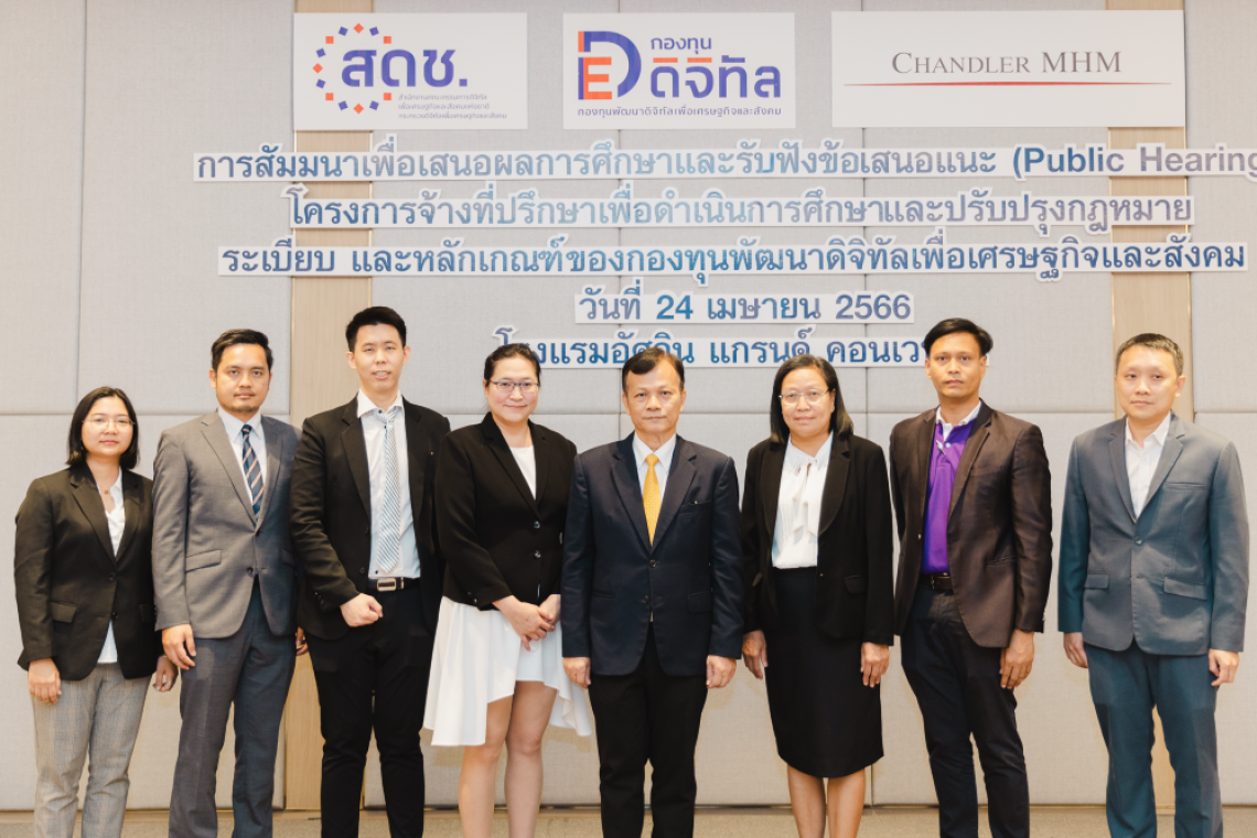 สดช. จัดสัมมนาเพื่อเสนอผลการศึกษาและรับฟังข้อเสนอแนะในการปรับปรุงกฎหมาย ระเบียบ และหลักเกณฑ์ของกองทุนพัฒนาดิจิทัลเพื่อเศรษฐกิจและสังคม วันนี้ (24 เมษายน 2566) นายภุชพงค์ โนดไธสง เลขาธิการคณะกรรมการดิจิทัลเพื่อเศรษฐกิจและสังคมแห่งชาติ เป็นประธานเปิดการสัมมนาเพื่อเสนอผลการศึกษาและรับฟังข้อเสนอแนะ (Public Hearing) โครงการจ้างที่ปรึกษาเพื่อดำเนินการศึกษาและปรับปรุงกฎหมาย ระเบียบ และหลักเกณฑ์ของกองทุนพัฒนาดิจิทัลเพื่อเศรษฐกิจและสังคม โดยมี นางสุรีพร พรโสภณวิชญ์ ผู้อํานวยการกองบริหารกองทุนพัฒนาดิจิทัลเพื่อเศรษฐกิจและสังคม สำนักงานคณะกรรมการดิจิทัลเพื่อเศรษฐกิจและสังคมแห่งชาติ กล่าวรายงาน ณ โรงแรมอัศวิน แกรนด์ คอนเวนชั่น กรุงเทพฯ