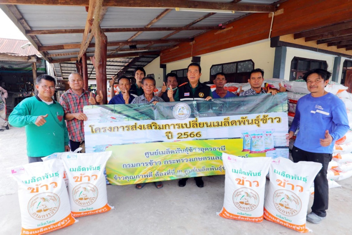 ว่าที่ ร.ท. อลงกต ถนอมสุข ผู้อำนวยการศูนย์เมล็ดพันธุ์ข้าวอุดรธานี กล่าวถึงการผลิตข้าวโดยภาพรวมของประเทศไทย ว่ายังมีผลผลิตอยู่ในเกณฑ์ต่ำ ค่าเฉลี่ยอยู่ที่ 353 กิโลกรัมต่อไร่ สาเหตุหนึ่งมาจาก การใช้เมล็ดพันธุ์ข้าวที่เกษตรกรเก็บไว้ใช้เองหลายฤดูการผลิต ซึ่งจะมีคุณภาพต่ำ โดยการที่จะปลูกข้าวให้ได้คุณภาพดี มีปัจจัยหลายอย่าง ทั้งคุณภาพดิน ปริมาณน้ำ และเทคโนโลยีต่างๆ แต่สิ่งที่สำคัญที่สุด คือ เมล็ดพันธุ์ข้าวพันธุ์ดี ที่เหมาะสมกับสภาพพื้นที่ มีผลผลิตสูง ต้านทานโรคและแมลง ปัจจุบันปัญหาสำคัญที่พบและเป็นปัญหาเร่งด่วน คือ ชาวนาขาดแคลนเมล็ดพันธุ์ข้าวคุณภาพดี ด้วยเหตุนี้ในปี 2565 กรมการข้าว ได้ดำเนินการโครงการส่งเสริมการเปลี่ยนเมล็ดพันธุ์ข้าว โดยมีวัตถุประสงค์เพื่อส่งเสริมให้ชาวนาเปลี่ยนเมล็ดพันธุ์ข้าวคุณภาพดีสำหรับใช้เพาะปลูก และเพิ่มประสิทธิภาพการผลิตข้าวให้สามารถแข่งขันในตลาดโลกได้