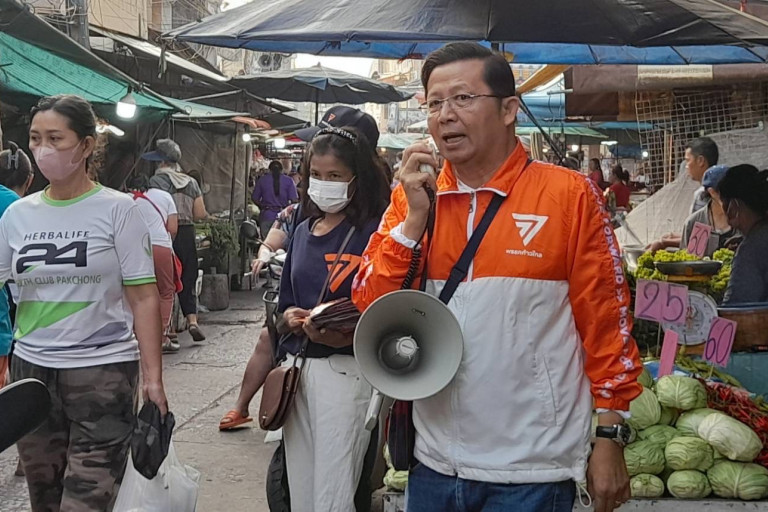 วันที่ 28 เมษายน 2566 เวลา 07.00น.ผู้สื่อข่าวรายงาน ว่า ที่ตลาดเช้าริมทางหลวงหมายเลข 2 ถ.มิตรภาพ สายเก่า เขตเทศบาลเมือง (ทม.) ปากช่อง จ.นครราชสีมา ดร.สาธิต ปิติวรา ผู้สมัคร ส.ส.เขต 14 พื้นที่ 8 ตำบล อ.ปากช่อง พรรคก้าวไกล (กก.) เบอร์ 7 ลงพื้นที่ประชาสัมพันธ์แนะนำตัวและชี้แจงนโยบายพรรคให้กับผู้ประกอบการค้าและพี่น้องประชาชนที่มาจับจ่ายซื้อสินค้าอุปโภค บริโภค รวมทั้งเปิดรับฟังเสียงสะท้อนปัญหาและสอบถามความต้องการ