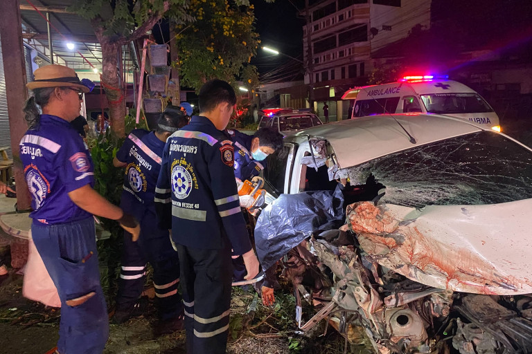 วันที่ 30 เมษายน 2566 เวลา 03.30 น.ร.ต.ท.พีระพงษ์ นาเมือง รองสารวัตรสอบสวน สภ.เรณูนคร จ.นครพนม รับแจ้งมีอุบัติเหตุรถยนต์เก๋งชนรถบรรทุก 6 ล้อ มีผู้เสียชีวิต และผู้ได้รับบาดเจ็บ ติดภายในรถเก๋ง เหตุเกิดบริเวณถนน ทางโค้งขาเข้าตัวเมือง อ.เรณูนคร ฝั่งมุ่งหน้ามาจาก อ.นาแก บริเวณโค้งหน้าวัดปัจฉิมาวาส ในเขตเทศบาลตำบลเรณู จึงประสานเจ้าหน้าที่กู้ชีพโรงพยาบาลอำเภอเรณูนคร พร้อมเจ้าหน้าที่กู้ภัยจากสมาคมกู้ชีพกู้ภัยเรณูนคร และเจ้าหน้าที่เกี่ยวข้อง ร่วมตรวจสอบ ให้การช่วยเหลือ ผู้ได้รับบาดเจ็บ นำตัวส่งโรงพยาบาล โดยในที่เกิดเหตุ บริเวณโค้งอันตราย อยู่ในพื้นที่ชุมชน พบสภาพรถเก๋ง ยี่ห้อนิสสัน อัลเมร่า สีขาว ทะเบียน งข 1924 ชลบุรี ในสภาพด้านหน้าฝั่งคนขับมีรอยเฉี่ยวชนได้รับความเสียหายอย่างหนัก สภาพหน้ารถยุบไปถึงตัวคนขับ ทำให้คนขับเป็นชายถูกแรงกระแทก เสียชีวิตติดพวงมาลัย และมีถุงลมนิรภัยแตก ส่วนคนนั่งข้างเป็นหญิง ได้รับบาดเจ็บเล็กน้อยบริเวณศีรษะ เจ้าหน้าที่จึงช่วยกันนำส่งไปรักษาที่โรงพยาบาลอำเภอเรณูนคร อาการปลอดภัย ภายหลังเจ้าหน้าที่ได้ช่วยกันนำเครื่องตัดถ่าง งัดร่างคนขับที่เสียชีวิต ออกมาจากซากรถเก๋ง ทราบชื่อภายหลัง คือ นายวัชรพล (สงวนนามสกุล) อายุ 37 ปี ชาว ต.หนองฮี อ.ปลาปาก จ.นครพนม สภาพศพมีบาดแผลบริเวณศีรษะ คาดเสียชีวิตจากแรงกระแทก เนื่องจากรถเก๋งเฉี่ยวชนจากมุมขวาฝั่งคนขับ