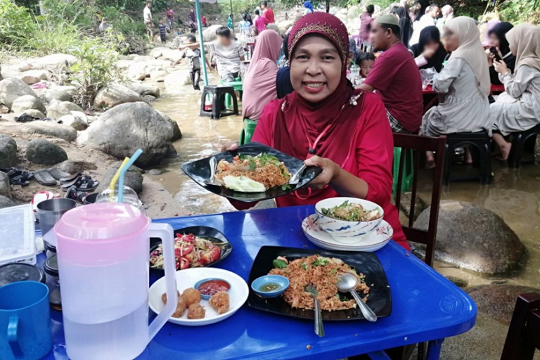 ส่วนผู้ปกครองก็ นั่งทานแบบแช่เท้าเย็นๆในน้ำ เพราะทางร้านจะมีบริการตั้งโต๊ะ เก้าอี้ ให้นั่งทานอาหารในน้ำอย่างสดชื่น ฟังเสียงน้ำไหล เสียงนกต่างๆที่สำคัญ อาหารที่นี้มีราคาถูกมาก และแอบกระซิบอีกว่า อนุญาตให้ลูกค้าพาอาหารมาจากบ้าน มารับประทานที่นี่ได้ ไม่ปิดกั้น ส่วนการบริการ อำนวยความสะดวกพร้อม ทั้งในเรื่อง อาหารการกินพร้อมราคาถูก ยังมีสถานที่ละหมาดสำหรับชาวไทยมุสลิม ห้องน้ำที่สะอาด ที่อาบน้ำฟรี น้ำดื่มฟรี จึงอยากให้ทุกคนที่ยังไม่รู้จะไปเที่ยวที่ไหน ในช่วงอากาศร้อนๆ อย่างนี้ มาเลยค่ะ ..เที่ยว กินอร่อยท่ามกลางธรรมชาติ **ร้านก๋วยเตี๋ยวบาตูฮาปา**นราธิวาส