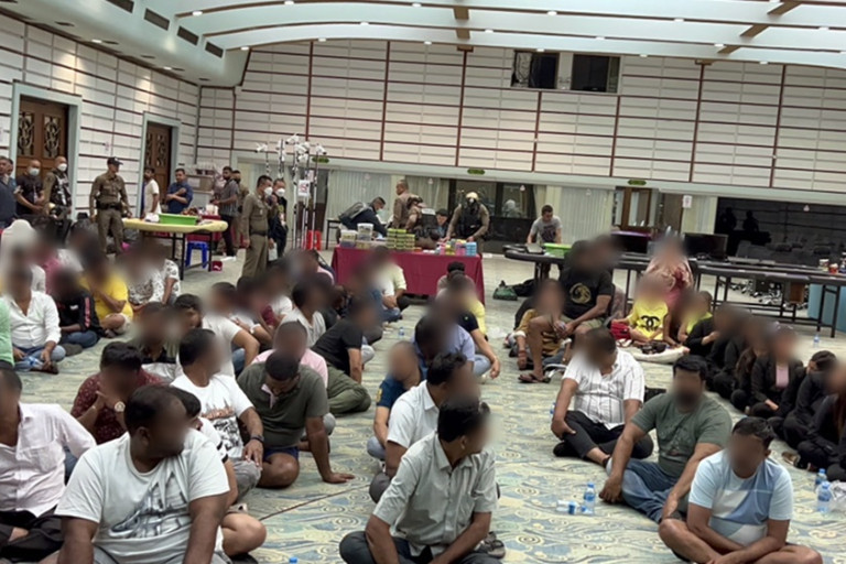 หลังรวบรวมข้อมูลแล้วจึงได้วางแผนพร้อมนำกำลังบุกเข้าตรวจสอบ จับกุม ขณะที่เข้าไปถึงพบว่านักท่องเที่ยวชาวอินเดียกำลังเล่นการพนันรูปแบบบาคาร่า และแบล็คแจ็ค กันอย่างเพลิดเพลิน เมื่อนักพนันเห็นเจ้าหน้าที่ตำรวจก็จะพากันวิ่งหลบหนี แต่เจ้าหน้าที่ได้นำกำลังปิดล้อมไว้หมดแล้ว จึงสามารถควบคุมไว้ได้ทั้งหมด 93 คน เป็นคนอินเดีย 83 คน เป็นผู้ชาย 71 คนผู้หญิง 16 คน ผู้ชายชาวพม่า 4 คน คนไทย 6 คน เป็นผู้ชาย 4 คน ผู้หญิง 2 คน ตรวจสอบพบของกลาง เป็นโต๊ะเล่นการพนันจำนวน 7 โต๊ะ เป็นโต๊ะบาคาร่า 4 โต๊ะ เป็นโต๊ะแบล็คแจ็ค 3 โต๊ะ ไพ่ 25 สำรับ ชิพแทนเงินสด จำนวน 209,215,000 เงินสกุลต่างประเทศ 160,000 รูปี กล้องวงจรปิด 8 ตัว โทรศัพท์มือถือ 92 เครื่อง คอมพิวเตอร์โน๊ตบุ๊ค 3 เครื่อง ไปแพด 1 เครื่อง ที่แจกไพ่ 3 เครี่อง รวมถึงมีบริการเสริฟบารากู่ ให้นักท่องเที่ยวอีก 4 ตัว พร้อมตัวยาประมาณ 800 กรัม นอกจากนี้ยังพบสมุดจดยอดเครดิตในการเล่นการพนัน รวมยอดเครดิตหมุนเวียนกว่า 1,000 ล้านรูปี