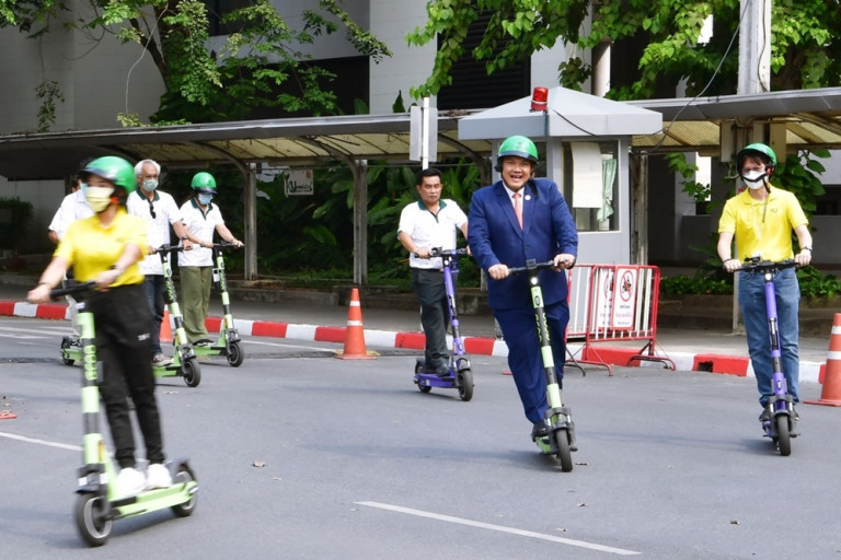 ทั้งนี้ ภายหลังจากพิธีเปิดแล้ว อธิการบดี พร้อมด้วย ผู้บริหาร บุคลากร นิสิต และ ผู้ขับขี่รถจักรยานยนต์ไฟฟ้า ได้ทดสอบการใช้งานของระบบขนส่งสาธารณะพลังงานไฟฟ้า ต่าง ๆ ภายในมหาวิทยาลัย ได้แก่ รถโดยสารสวัสดิการพลังงานไฟฟ้า (รถรางไฟฟ้า) ขนาด 23 ที่นั่ง จำนวน 5 คัน ซึ่งจัดซื้อใหม่เพื่อเสริมกำลังรถบัสไฟฟ้าเดิมที่มีอยู่แล้ว 3 คัน และทดแทนรถที่ใช้น้ำมันที่ให้บริการในปัจจุบัน ที่มีสภาพเก่า เครื่องยนต์สึกหรอจากการใช้งานมานาน นอกจากนี้ ยังเพิ่มเติมยานพาหนะรูปแบบใหม่ใหนิสิตและบุคลากรได้ทดลองใช้ คือ รถสกูตเตอร์ไฟฟ้า ที่พร้อมให้ทดสอบระบบการใช้งานเมื่อเปิดเทอมแล้วจำนวนประมาณ 1,000 คัน เป็นเวลา 1 ปี และ รถมอเตอร์ไซค์ไฟฟ้า จำนวน 100 คัน ซึ่งรถมอเตอร์ไซค์ไฟฟ้านั้นได้ทดลองนำมาใช้ในระยะหนึ่งแล้ว และได้รับการตอบรับอย่างดีเนื่องจากสามารถขนส่งผู้เดินทางไปยังอาคารสถานที่ต่างๆในเขตการเรียนการสอนของมหาวิทยาลัยได้ เพราะไม่มีมลภาวะทางเสียงและควันรบกวน