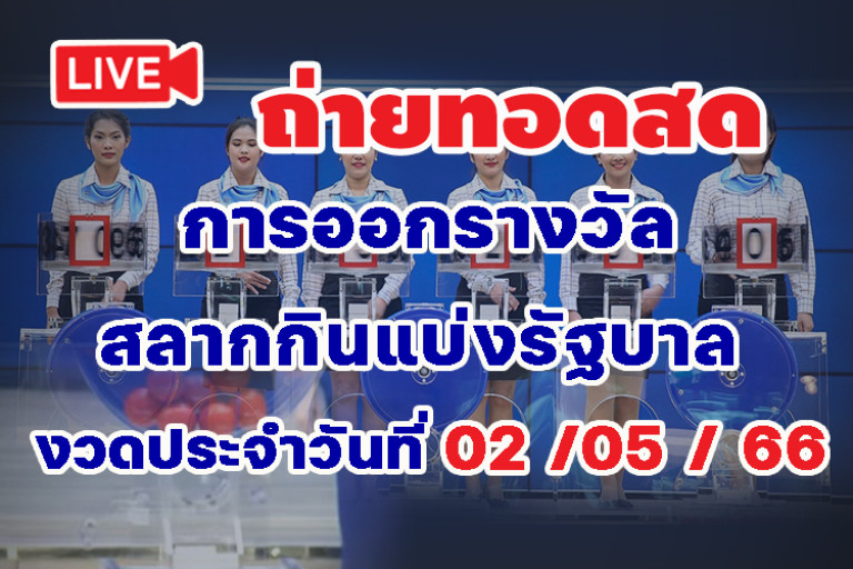 รับชมการถ่ายทอดสด ผลสลากกินแบ่งรัฐบาล งวดประจำวันที่ 2 พฤษภาคม 2566 จากสำนักงานสลากกินแบ่งรัฐบาล ตรวจหวย ร่วมลุ้นรางวัลที่ 1 เลขท้าย 2 ตัว เลขท้าย 3 ตัวและรางวัลอื่นๆ ไปพร้อมๆกัน